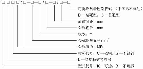 3、螺旋板式換熱器型號(hào)表示方法如下: